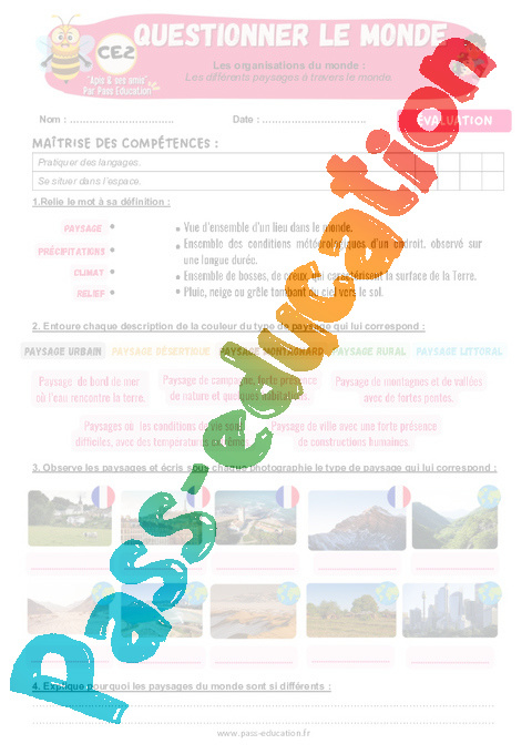 6 Evaluation : Primaire 3 Les différents paysages à travers le monde pdf