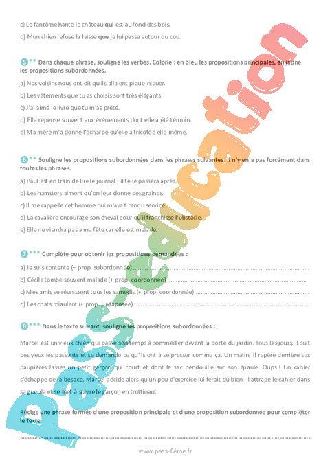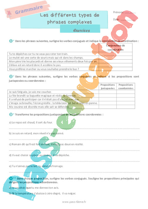 Exercices Les différents types de phrases complexes 6ème pdf