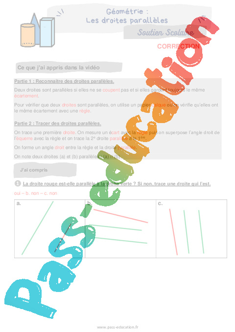 Les droites parallèles : Primaire 4 – Soutien scolaire Correction pdf