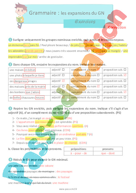 Correction Exercices Les expansions du groupe nominal (GN) : Primaire 5 pdf