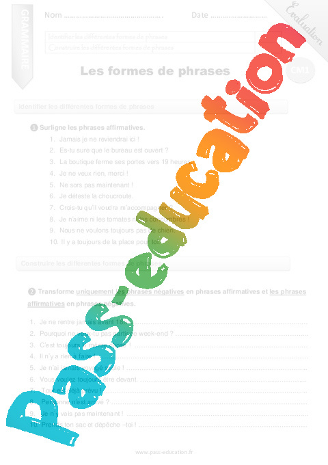 Les formes de phrases : Primaire 4 -Evaluation-Bilan pdf