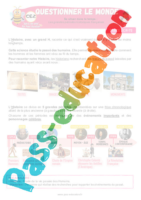 Leçon – Les grandes périodes historiques françaises en Primaire 3 – Apis & ses amis : Questionner le monde.