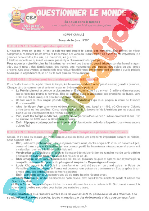 2 Script : Primaire 3 Les grandes périodes historiques françaises pdf