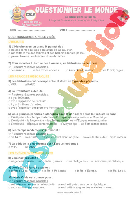 3.1 Correction QCM capsule vidéo : Primaire 3 Les grandes périodes historiques françaises pdf