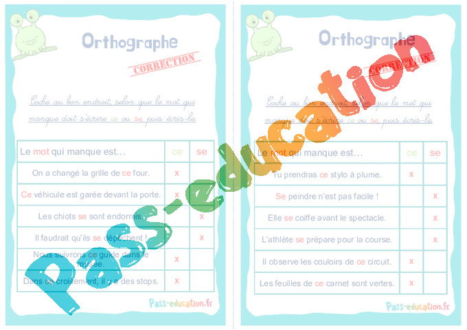 Les homophones ce se : Primaire 2, 3 – Rituels – Orthographe Correction pdf