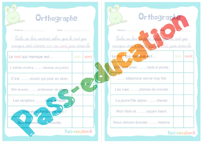Les homophones son sont : Primaire 2, 3 – Rituels – Orthographe rtf