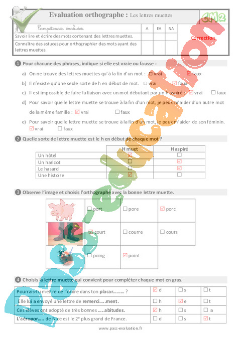 Les lettres muettes en Primaire 5 – Evaluation QCM – Quiz Correction pdf