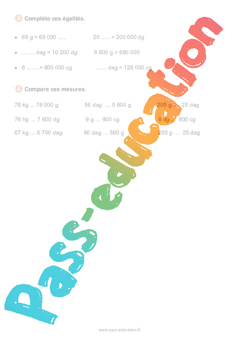 Les mesures de masse : Primaire 4 – Soutien scolaire Correction pdf
