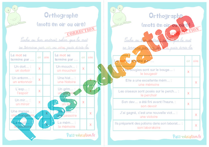 Les mots en oir ou oire : Primaire 2, 3 – Rituels Correction pdf