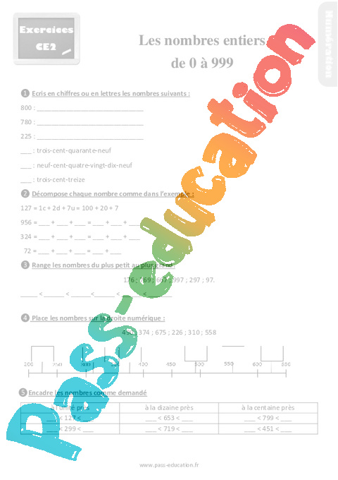 : Primaire 3 -Exercices-les nombres de 0 à 999-Correction pdf