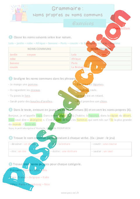 Correction Exercices Les noms communs et noms propres : Primaire 2 rtf