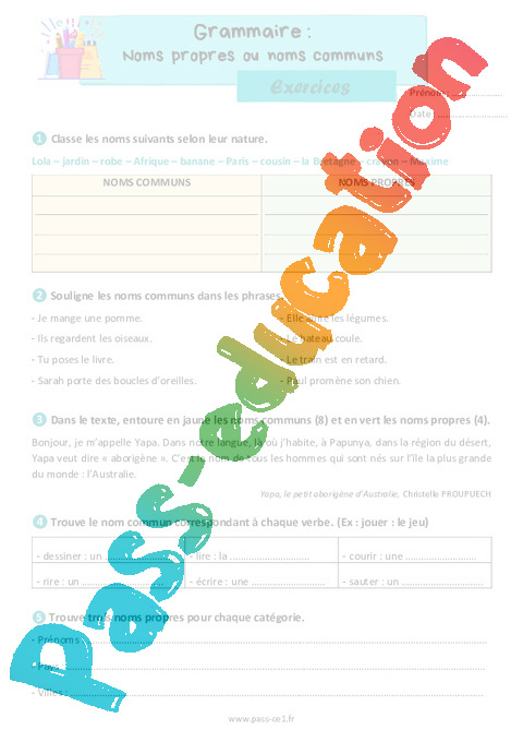 Exercices Les noms communs et noms propres : Primaire 2 rtf