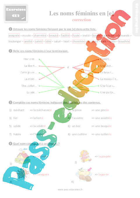 Exercices : Primaire 3 – Les noms féminins en [e] et [te] – Correction pdf