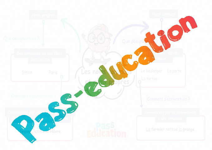 Cette carte mentale va permettre à l’aide de mots clés et d’associations d’idées d’avoir une vision synthétique sur la notion à mémoriser « Les noms propres et noms communs ».