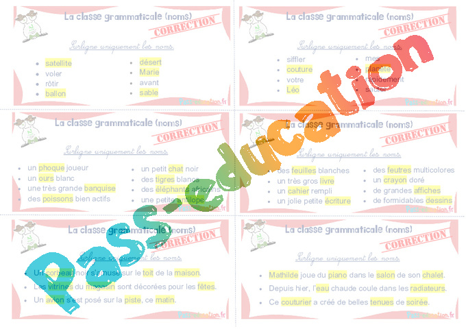 Les noms : Primaire 2, 3 – Rituels – La classe grammaticale Correction pdf