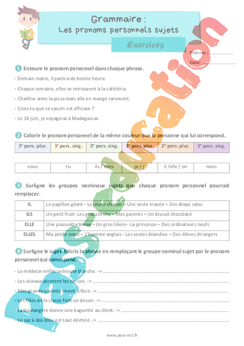 Exercices Les pronoms personnels sujet : Primaire 3 rtf