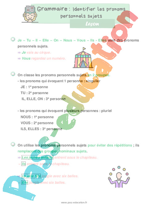 Leçon : Primaire 2 Identifier les pronoms personnels sujets pdf