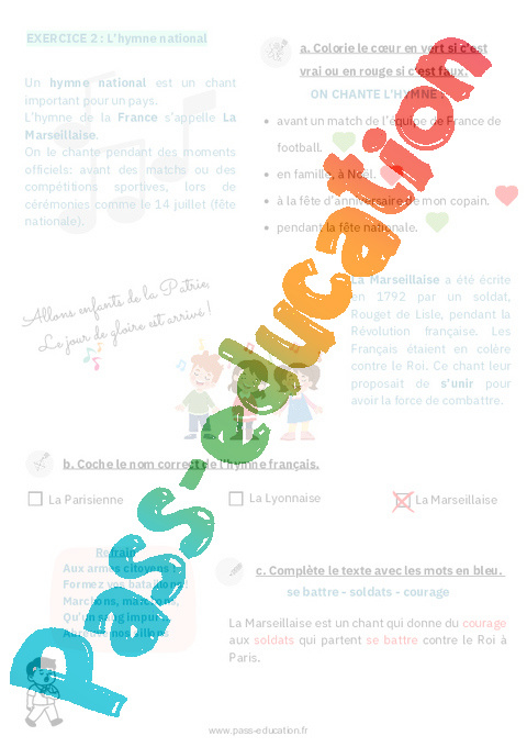 4a Correction Fiche élève : Primaire 1 Le drapeau et l’hymne – Les symboles de la République pdf