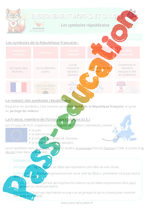 Leçon à imprimer – Les symboles républicains : Primaire 5 – EMC Education morale et civique.