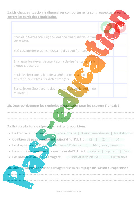 6. Correction Fiche évaluation Les symboles républicains : Primaire 5 pdf