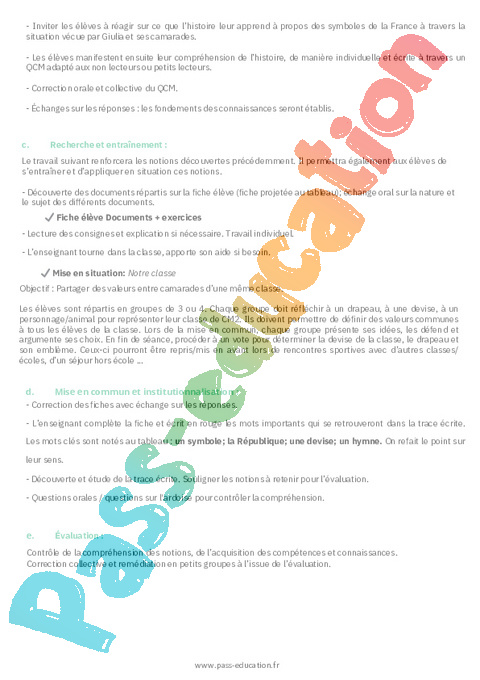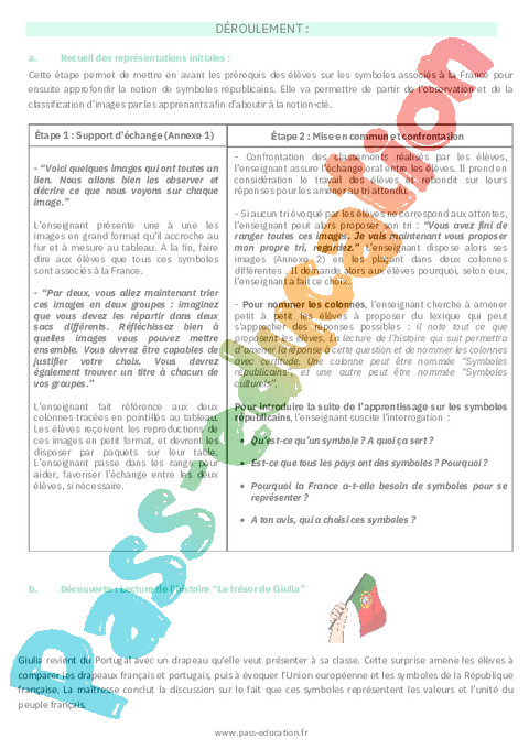 1. Fiche de préparation Histoire Les symboles républicains : Primaire 5 pdf