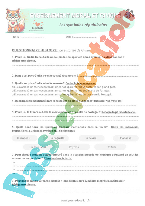 3. Questionnaire Histoire Les symboles républicains : Primaire 5 pdf