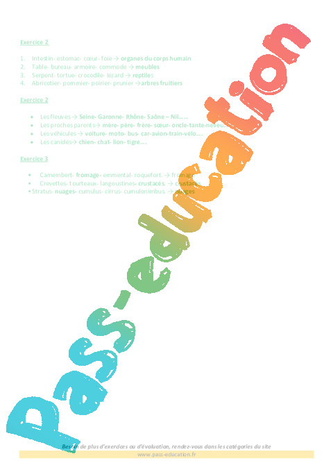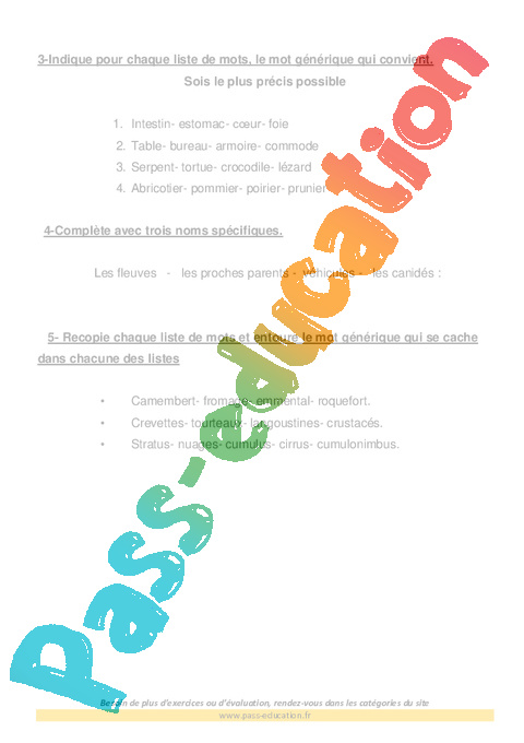 Les termes génériques et spécifiques : Primaire 5 -Exercices pdf