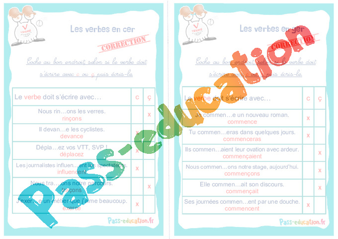Les verbes en cer : Primaire 4, 5 – Rituels pdf