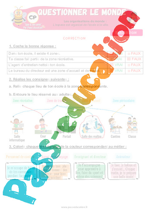 6.1 Correction Evaluation : Primaire 1 L’espace est organisé de l’école à la ville pdf