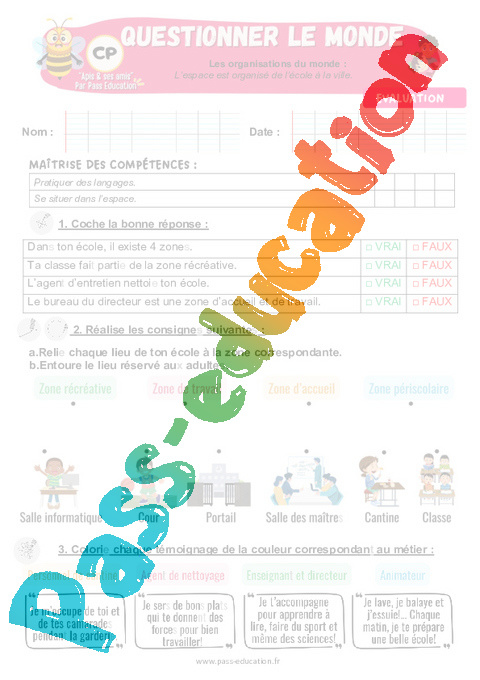 6 Evaluation : Primaire 1 L’espace est organisé de l’école à la ville pdf