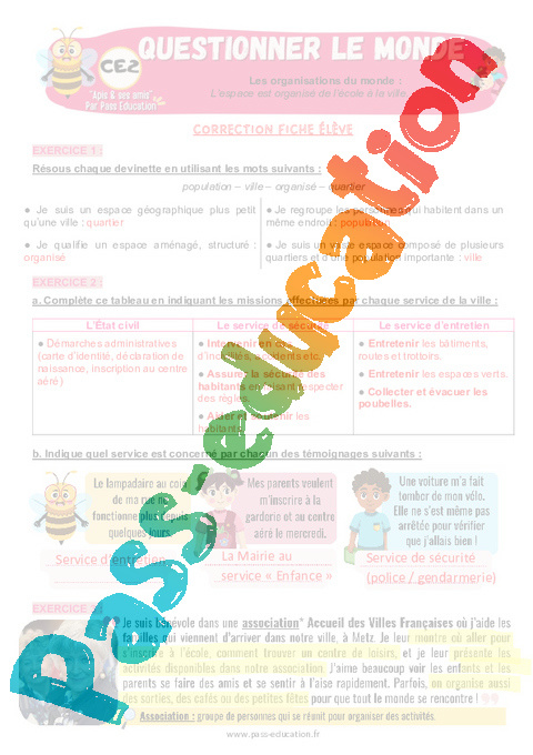 4.1 Correction Fiche Elève : Primaire 3 L’espace est organisé de l’école à la ville pdf