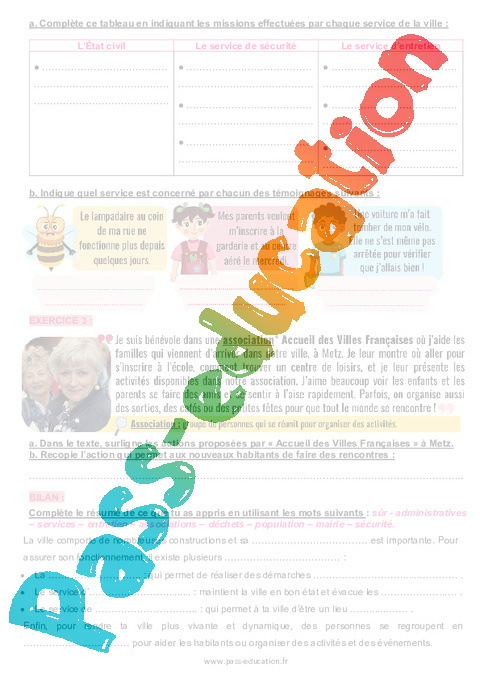 a. Complète ce tableau en indiquant les missions effectuées par chaque service de la ville :