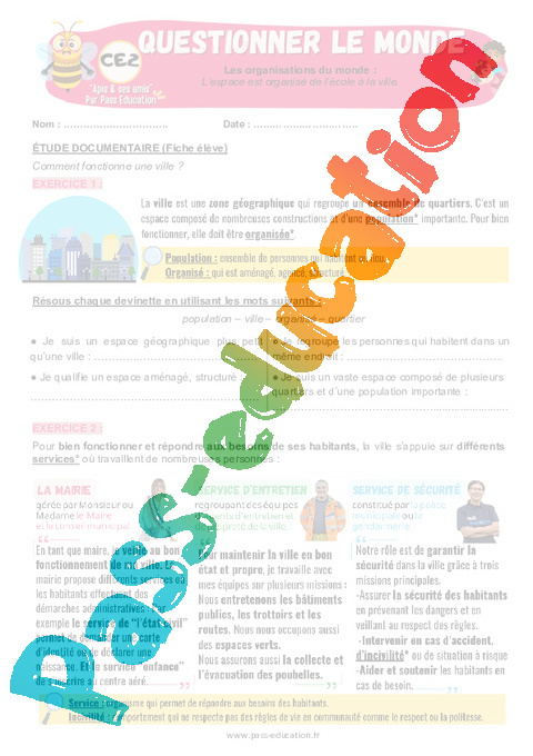 4 Fiche Elève : Primaire 3 L’espace est organisé de l’école à la ville pdf