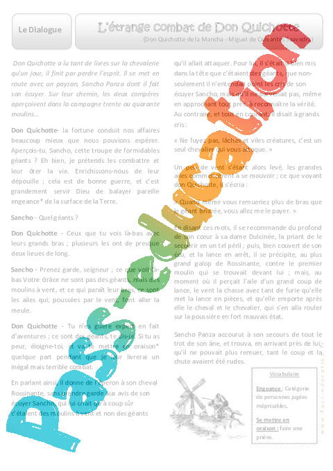 Sujet : L’étrange combat de Don Quichotte : Primaire 3 – Texte théâtrale – Lecture