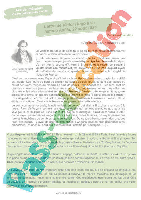 Littérature : Secondaire 3 Lettre de Victor Hugo à sa femme Adèle pdf