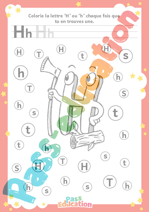 Colorie la lettre ‘H’ ou ‘h’ chaque fois que tu en trouves une.