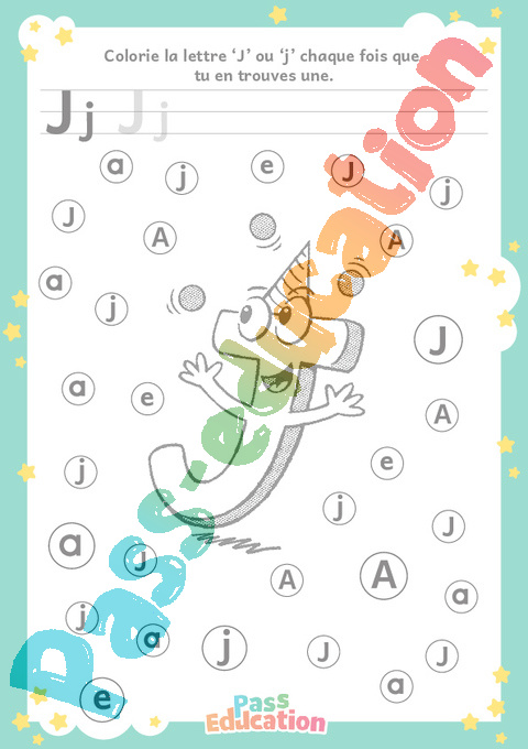 Colorie la lettre ‘J’ ou ‘j’ chaque fois que tu en trouves une.
