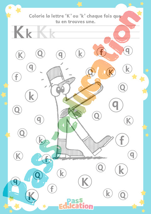 Colorie la lettre ‘K’ ou ‘k’ chaque fois que tu en trouves une.