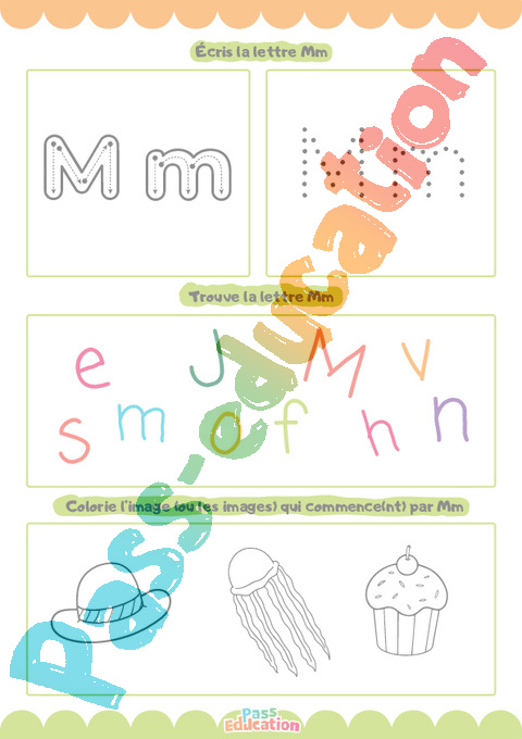 Une activité ludique pour apprendre à écrire la lettre M en majuscule et minuscule, reconnaître sa forme et la repérer dans un mot. Les enfants termineront en coloriant une image qui commence par M, pour renforcer l’apprentissage par le jeu.