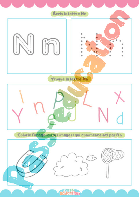 Une activité ludique pour apprendre à écrire la lettre N en majuscule et minuscule, reconnaître sa forme et la repérer dans un mot. Les enfants termineront en coloriant une image qui commence par N, pour renforcer l’apprentissage par le jeu.