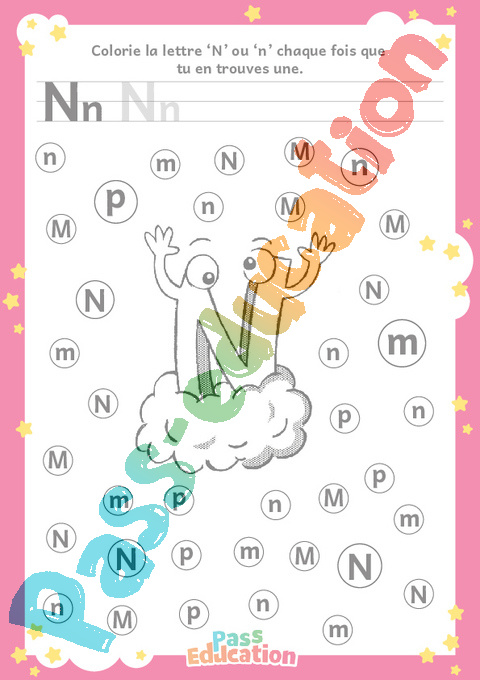 Colorie la lettre ‘N’ ou ‘n’ chaque fois que tu en trouves une.