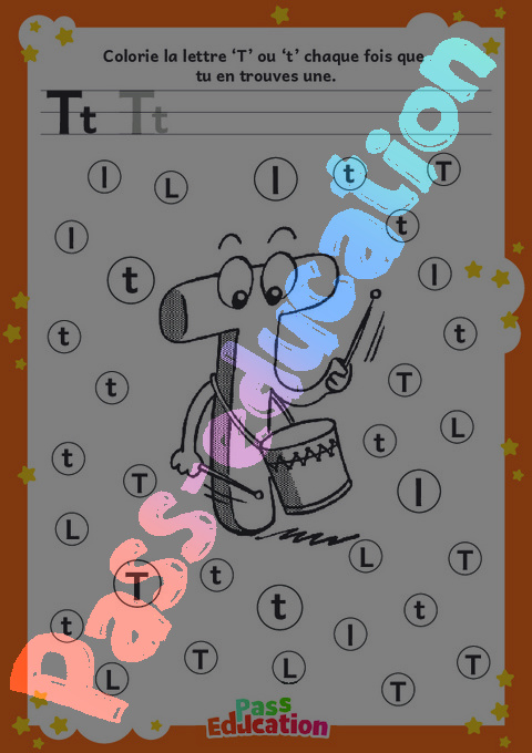 Colorie la lettre ‘T’ ou ‘t’ chaque fois que tu en trouves une.