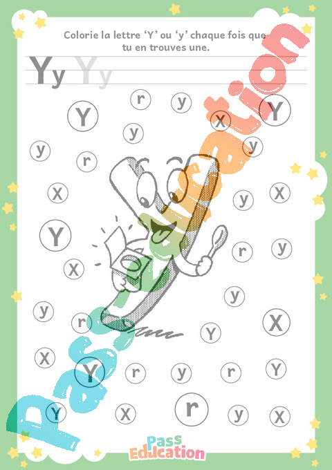 Colorie la lettre ‘Y’ ou ‘y’ chaque fois que tu en trouves une.