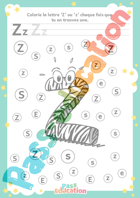 Colorie la lettre ‘Z’ ou ‘z’ chaque fois que tu en trouves une.
