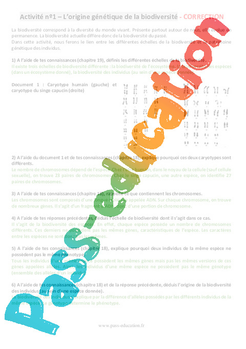 Activité n°1 – L’origine génétique de la biodiversité Correction pdf