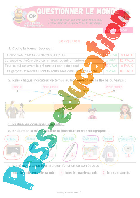 6.1 Correction Evaluation : Primaire 1 L’évolution de la société au fil du temps rtf