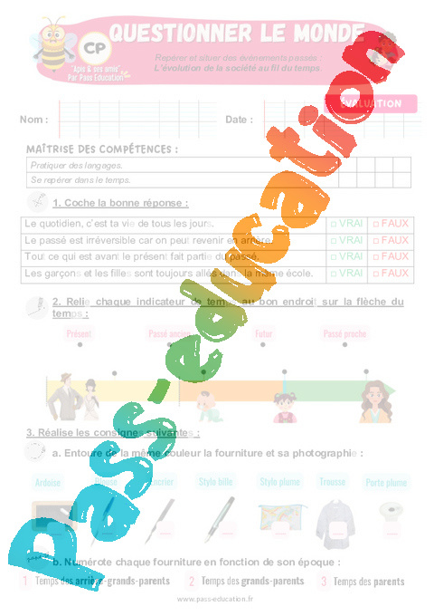 6 Evaluation : Primaire 1 L’évolution de la société au fil du temps pdf