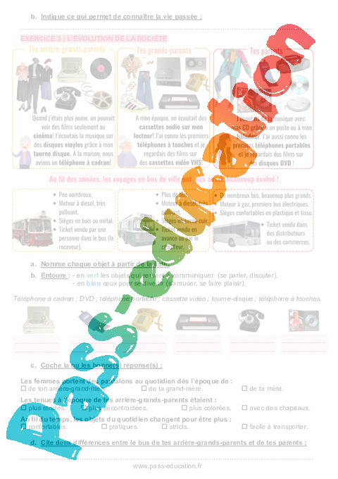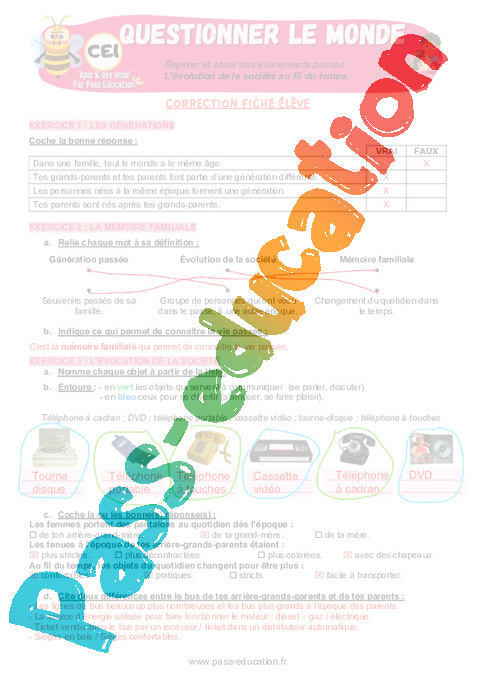 4.1 Correction Fiche élève : Primaire 2 L’évolution de la société au fil du temps pdf