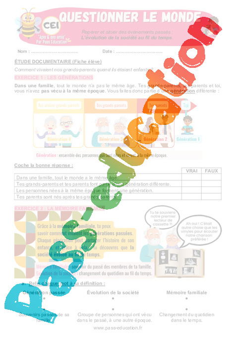 Exercices – L’évolution de la société au fil du temps en Primaire 2 – Apis & ses amis : Questionner le monde.