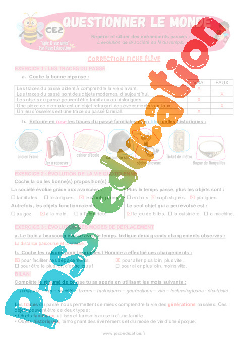 4.1 Correction Fiche Elève : Primaire 3 L’évolution de la société au fil du temps pdf